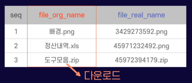 기존 파일명으로 다운 받을 수 있게 DB에 저장한다.