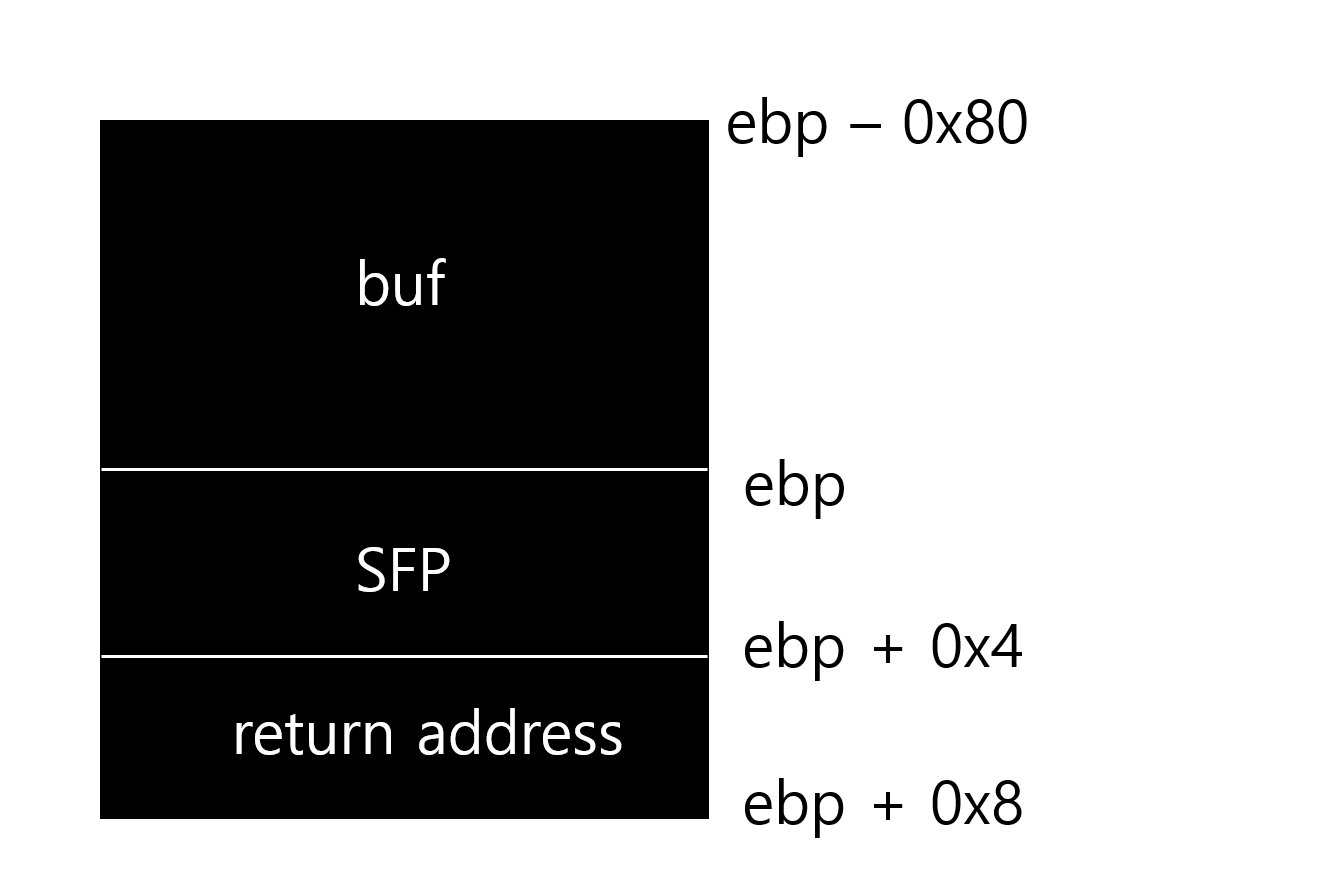 return address에 buf의 주소를 덮어쓰면, 함수 종료 후 쉘 코드가 실행될 것이다.