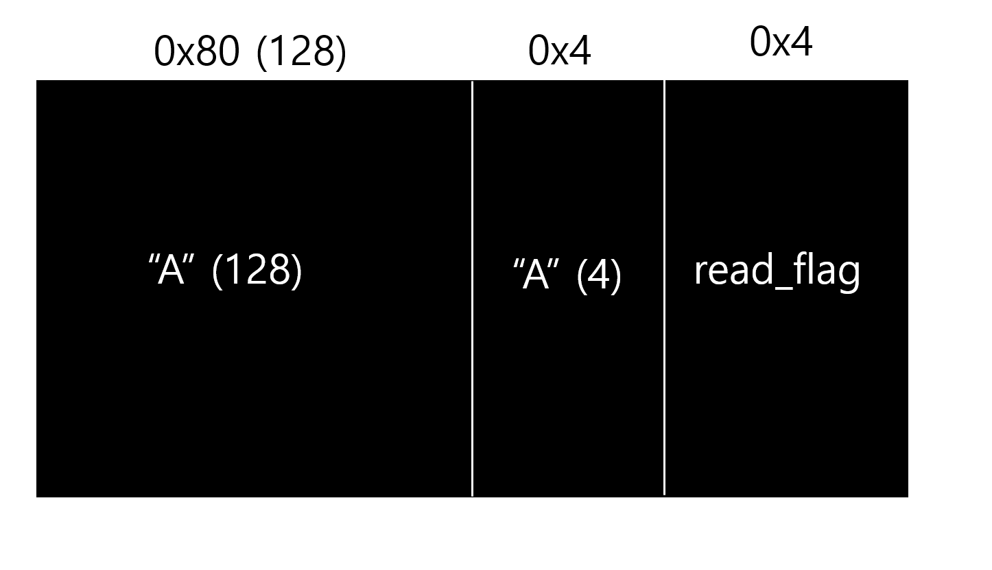 read_flag() 함수를 실행하면 flag 파일의 내용을 읽을 수 있으므로, 반환 주소를 read_flag()의 주소로 overwrite하면 flag 값을 알아낼 수 있을 것이다.